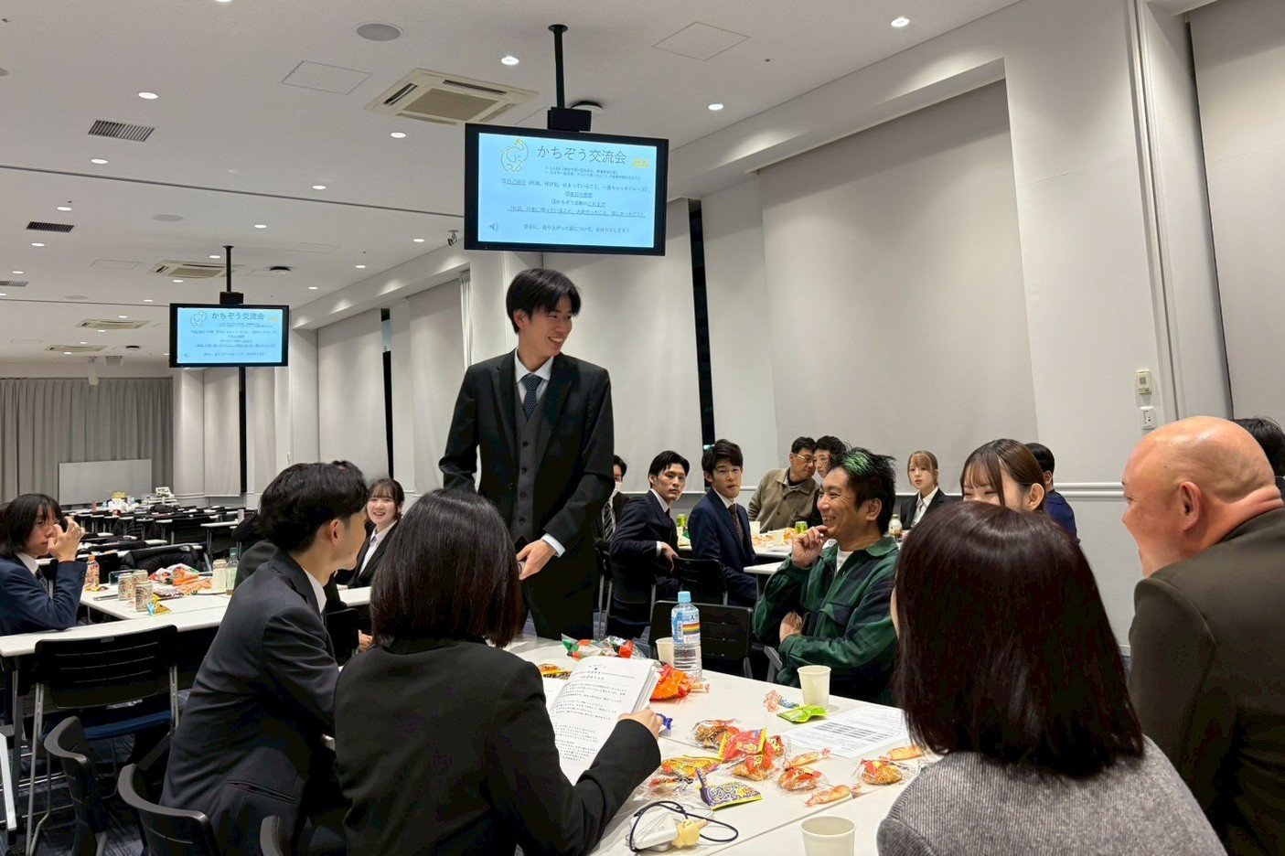 2025年12月に、関西大学梅田キャンパス8階ホールにて、一般社団法人そばくりラボ主催の「かちぞうzemi」第11回最終報告会が開催されました。産学連携プロジェクト「かちぞうzemi」は、よりよい社会に向けて、企業とともに新たな価値の創造にチャレンジする実践的教育プログラムです。京都産業大学からは、柴野ゼミと森口ゼミが参加し、近畿大学(金ゼミ)、関西大学(横山ゼミ)とともに8チームが半年間の成果をプレゼンテーションしました。
