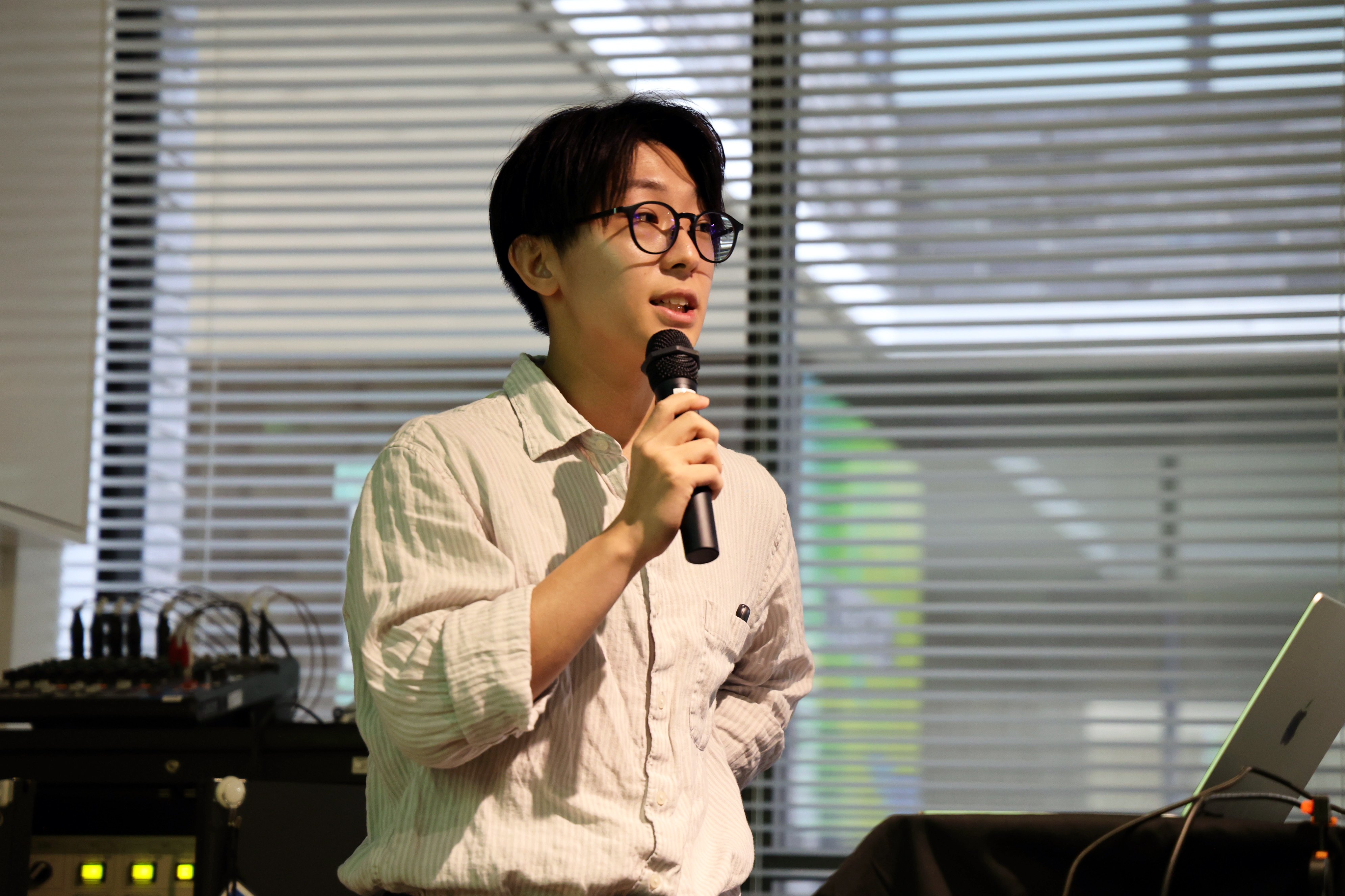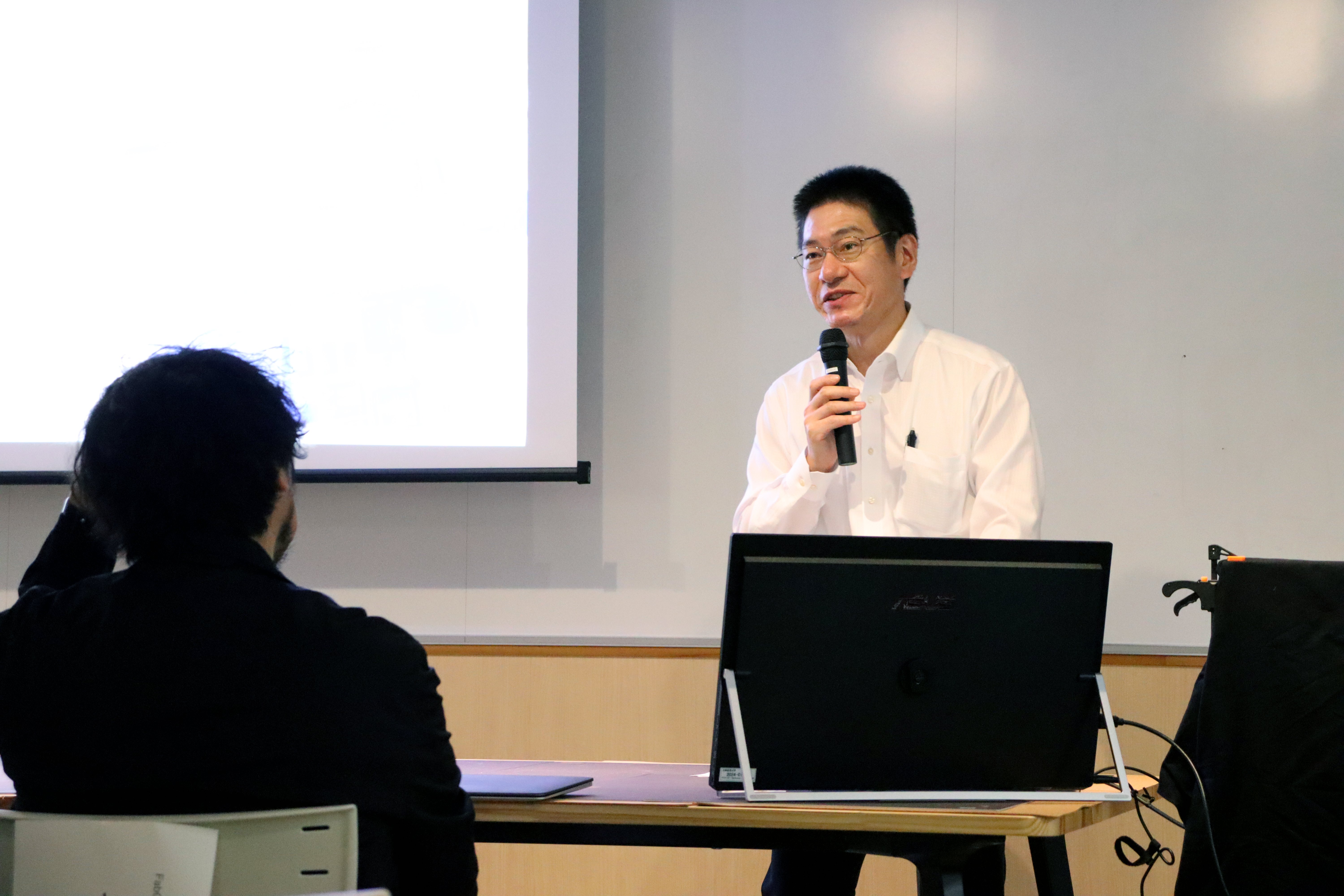 ▲徳山 倖我氏(本学卒業生):プレゼンテーションの様子