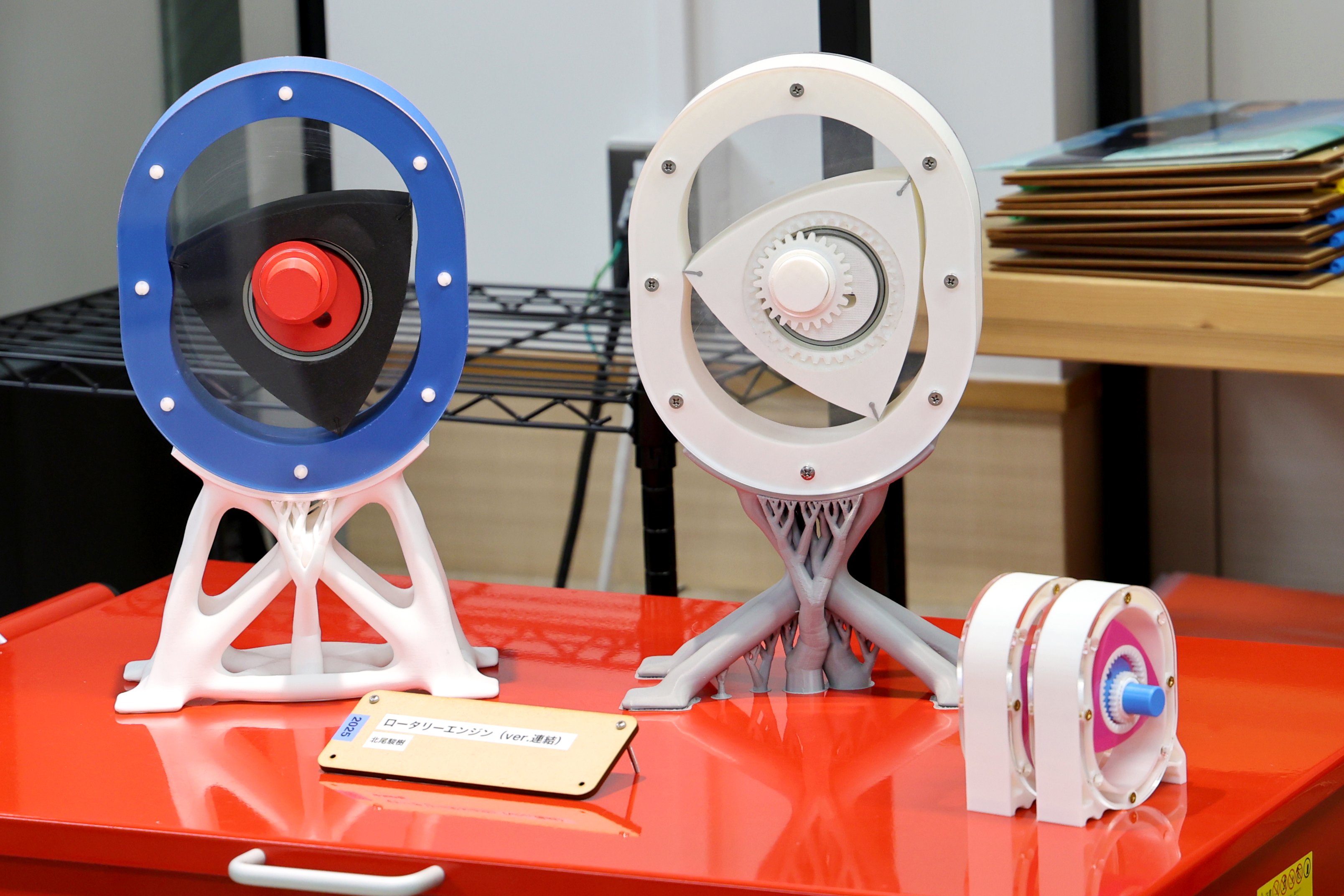 ファブスペース制作イベント「CAD道場2025」の成果物であるロータリーエンジン機構