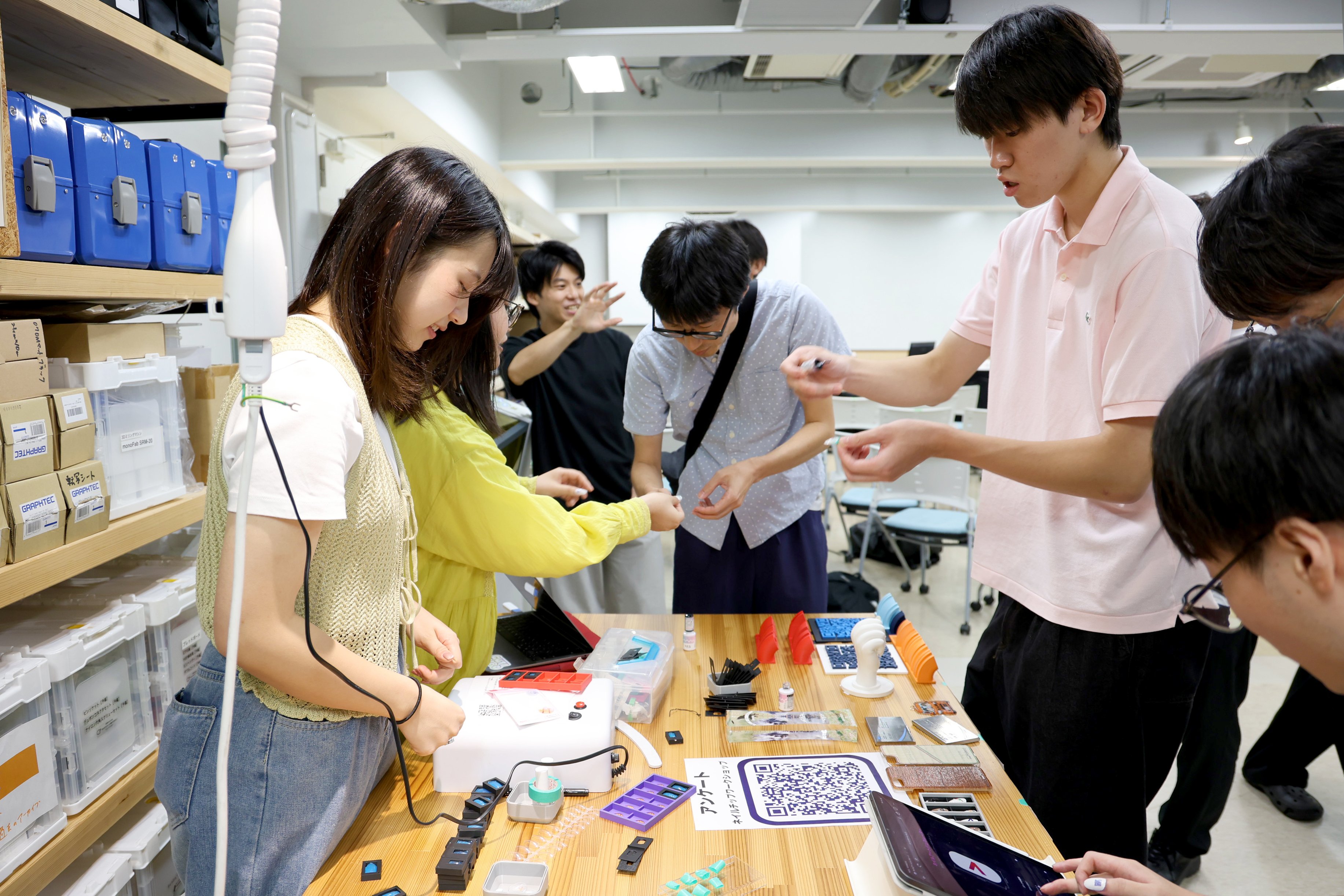 会場では学内外から持ち寄られた作品展示や学生が考案したオリジナルのワークショップ「マイネイル工房」、イベント協力いただいたローランド ディー.ジー.株式会社のメタルプリンターなどで参加者はものづくりの面白さを体験しました。