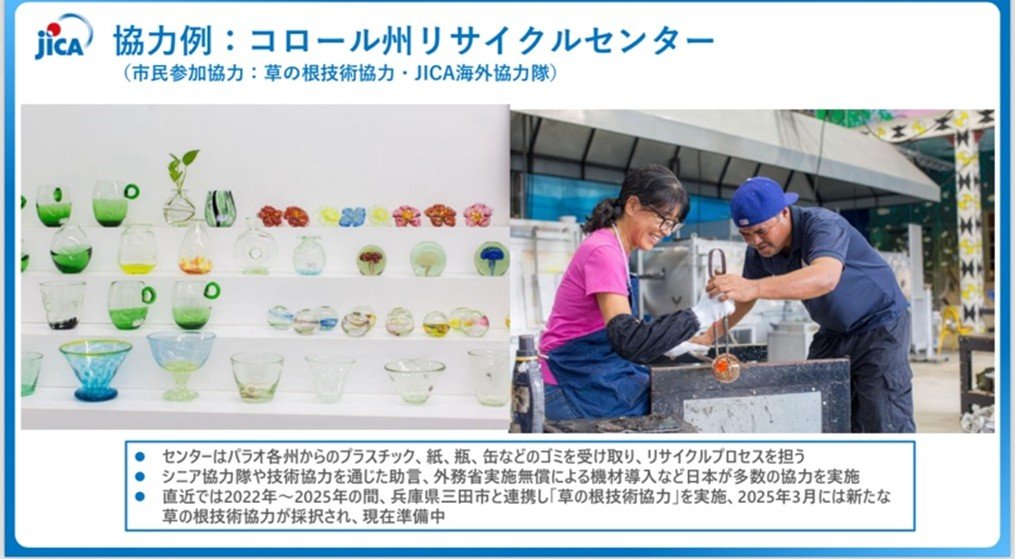 「日本・パラオ友好の橋」の建設やパラオ国際空港ターミナルビルの整備、コロール州リサイクルセンターやパラオ国際珊瑚礁センターの運営なども、JICAをはじめ、日本の民間企業やボランティアの協力のもと進められてきた。こうした取り組みは、単なる設備整備にとどまらず、小規模な社会において人と人の関係性を前提に進められる国際協力の在り方を象徴する事例として紹介された。