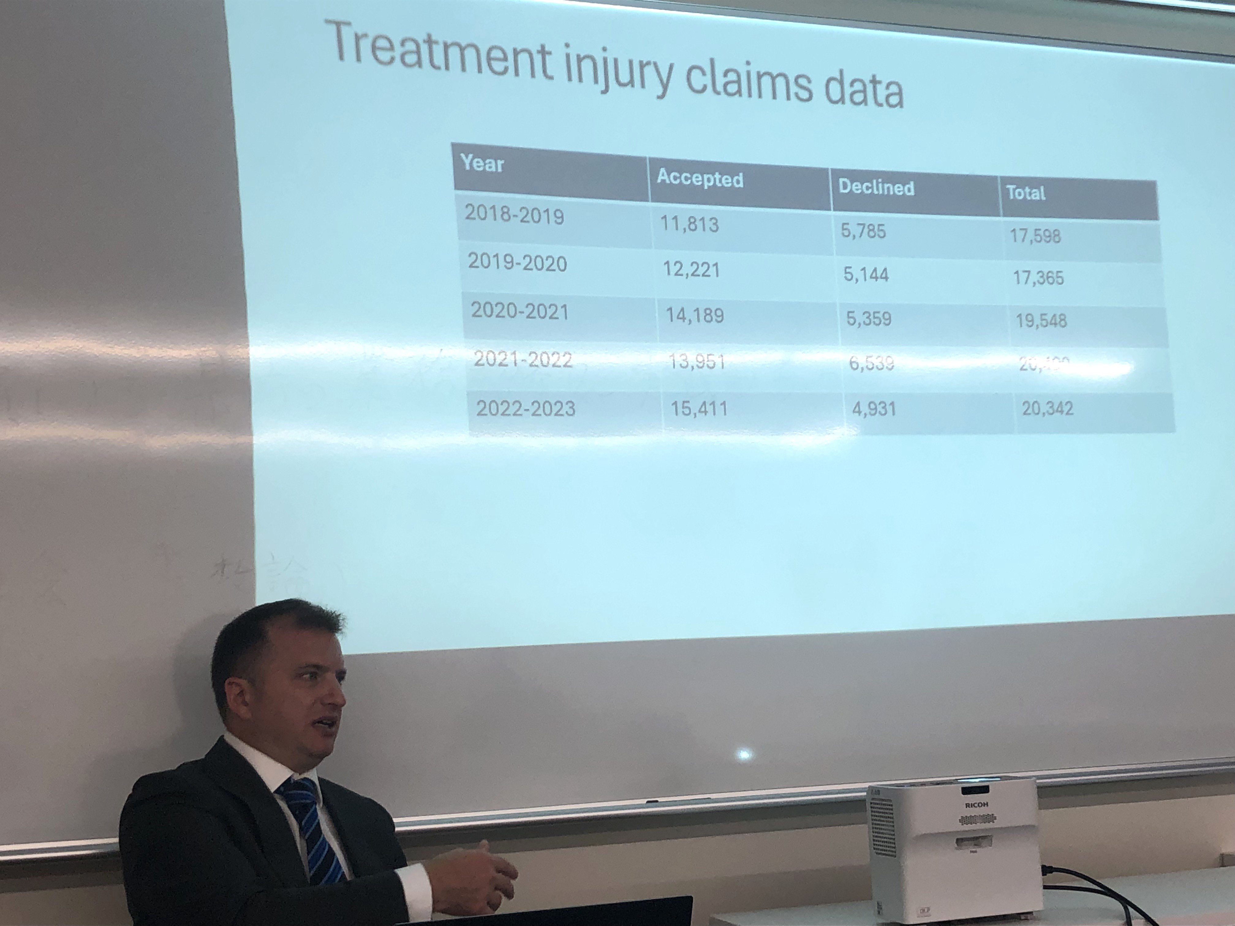 本研究会では、Havelock 准教授にニュージーランドの先進的な事故補償制度(no fault system)について英語でご講演いただきました。