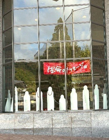 犠牲者の等身大の人型オブジェは《メッセンジャー》と呼ばれており、生前の写真と持ち物、家族から寄せられたメッセージ等を添えて展示し、生命の大切さを訴えています。
