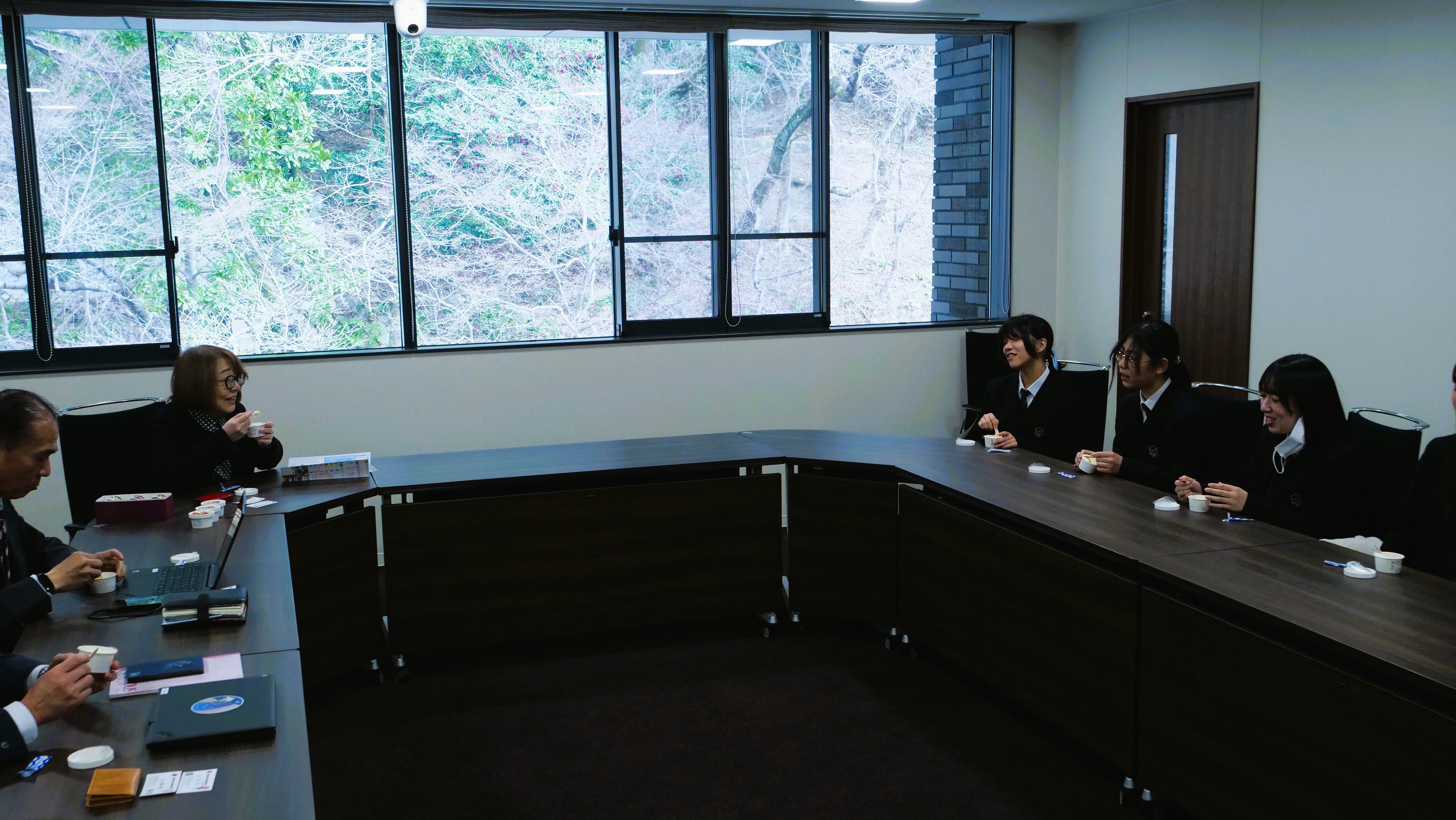 今回の訪問では、アイスクリーム試作品の報告に加え、研究室見学や学内施設の紹介が行われました。