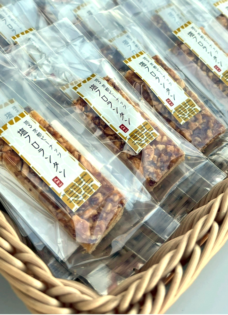 1回目の試作では、ゼミ生が考えたレシピを元に、ゼミ内全体で試食を行いました。クッキー生地やキャラメルの質感など改善点がいくつかが挙げられました。2回目の試作では、キャラメルをより感じてもらえるように、クッキー生地も分厚く加工し、落花生の風味を崩さないように試行錯誤を重ねました。