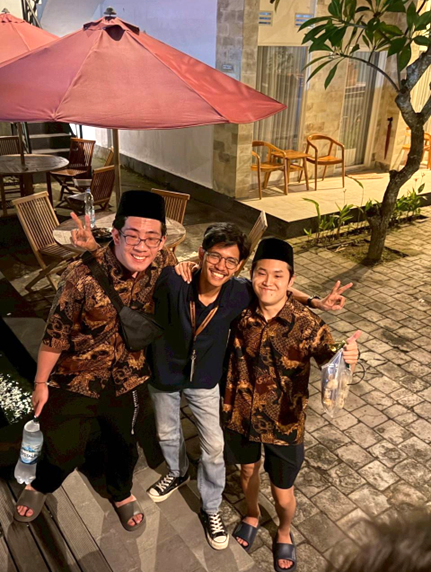 まず羽田からガルーダ・インドネシア航空の便を利用しました。機内に入ると微かにエスニックなスパイスの香りを感じ、インドネシア語と英語のアナウンスにより、日本語の世界を離れるという事実を実感しました。また、キャビンアテンダントの方とのコミュニケーションでも日本語はほとんど通じず、翻訳ソフトを使えないこともあり、皆、慣れない英語を絞り出してコミュニケーションをとっていました。