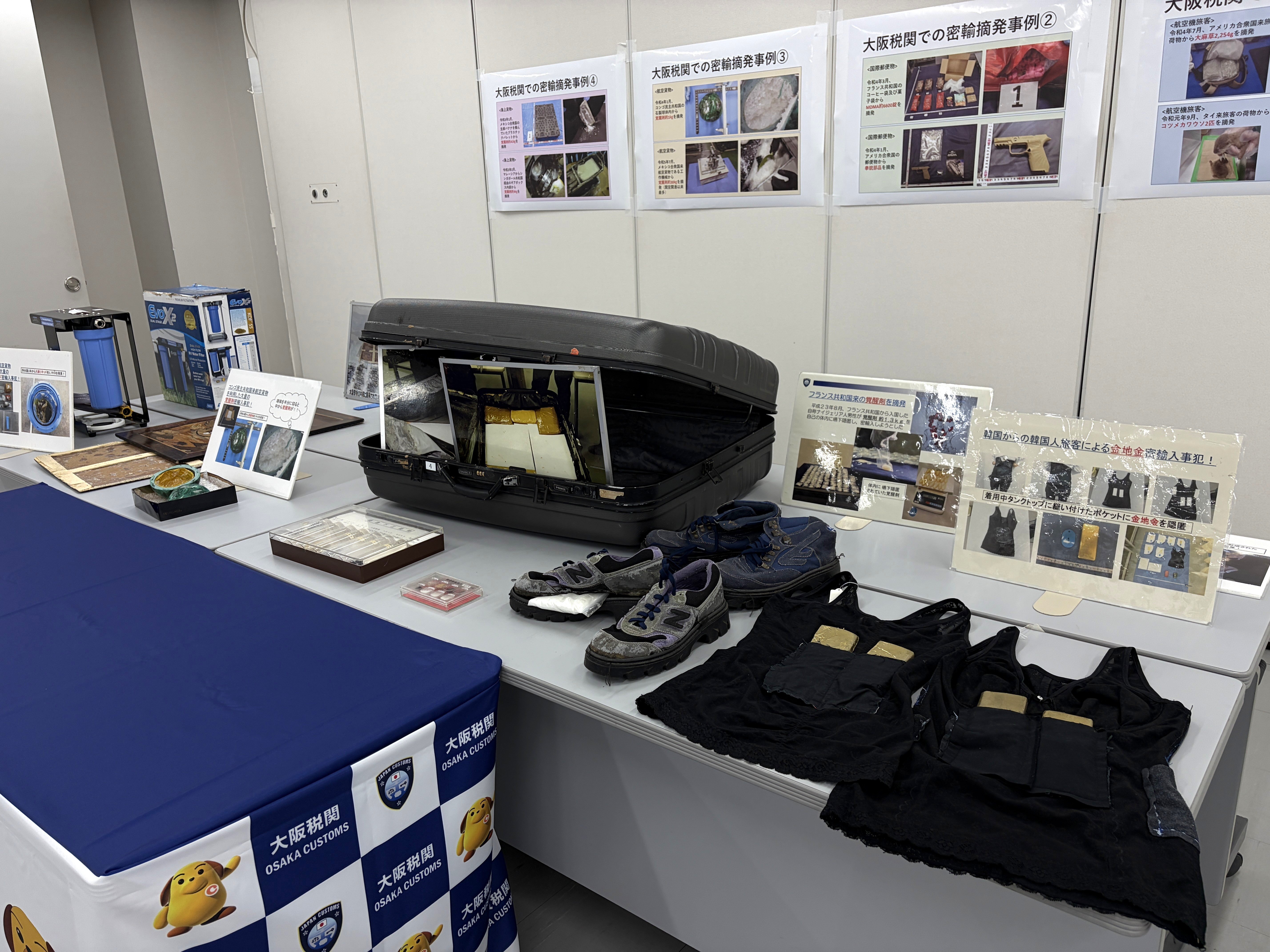 午前中はDVDによる税関の説明を視聴し、その後「隠匿具」「知財侵害物品」の展示および入国検査場を見学しました。