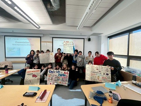 “English Language Communication” という授業ではプレゼンテーションやディスカッションを通じて英語を学習しました。私たちはカナダで過ごす中で印象に残った異文化と、自分たちで街に出向いて行った調査について2つのプレゼンテーションを行いました。