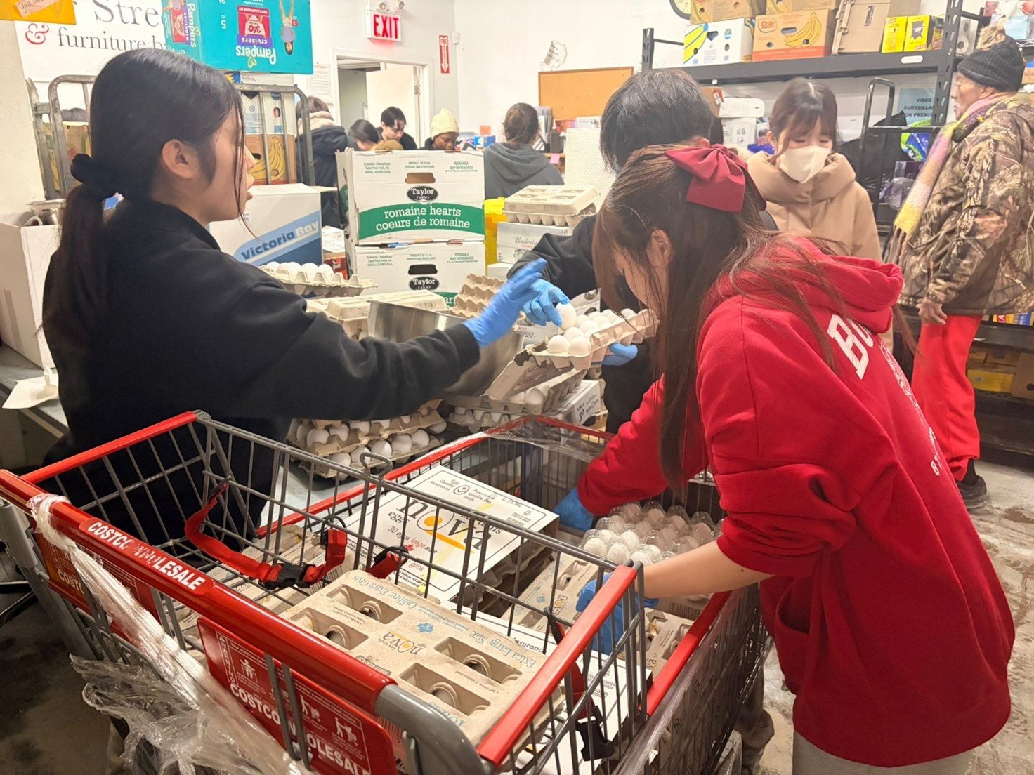 数日後、今度は街のフードバンクにボランティア活動に行き、食べ物を届けるための仕分け作業や、箱に詰める作業をお手伝いしました。寄付されているのは食べ物だけでなく、服やおもちゃ、家具など沢山ありました。