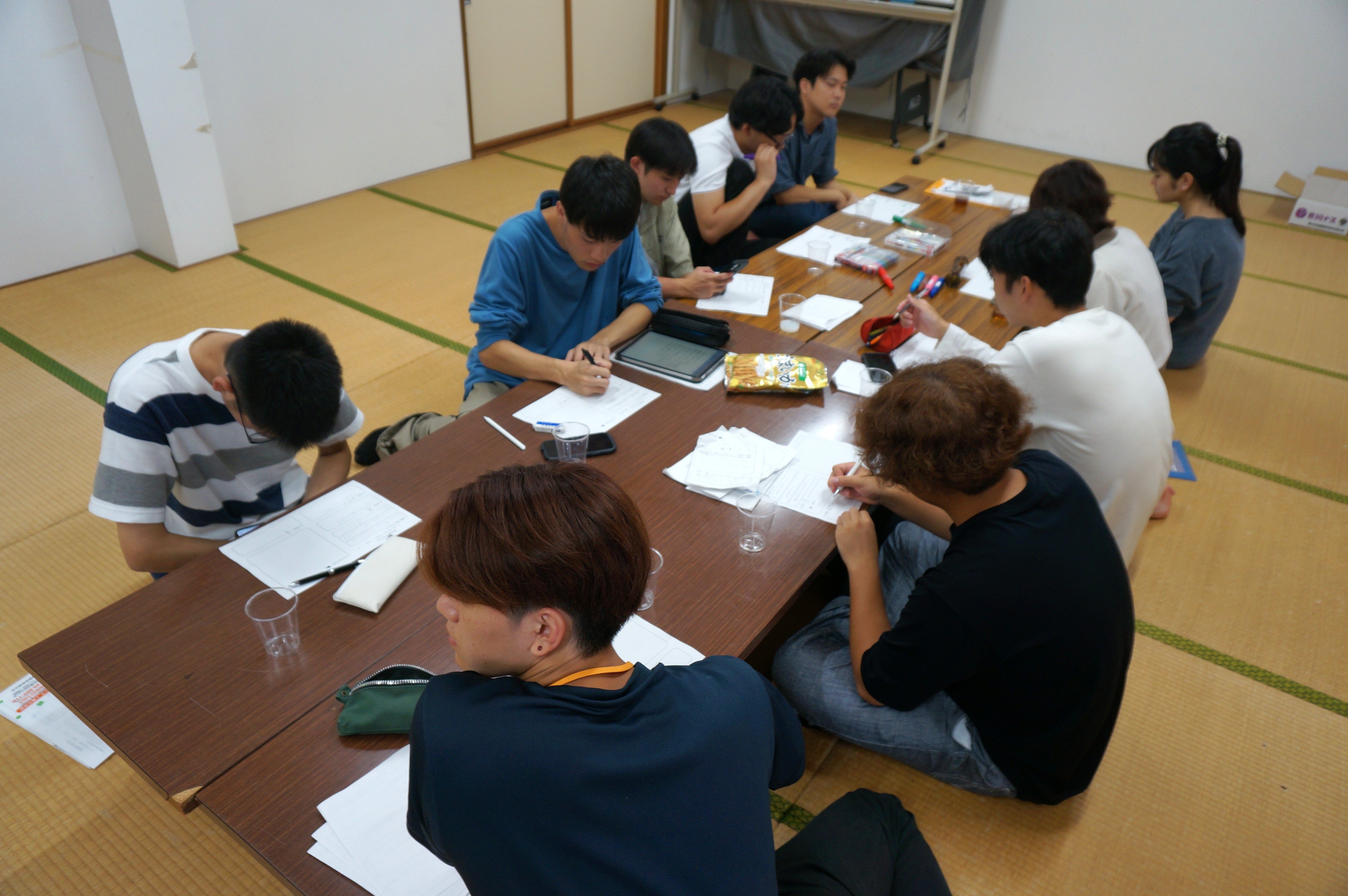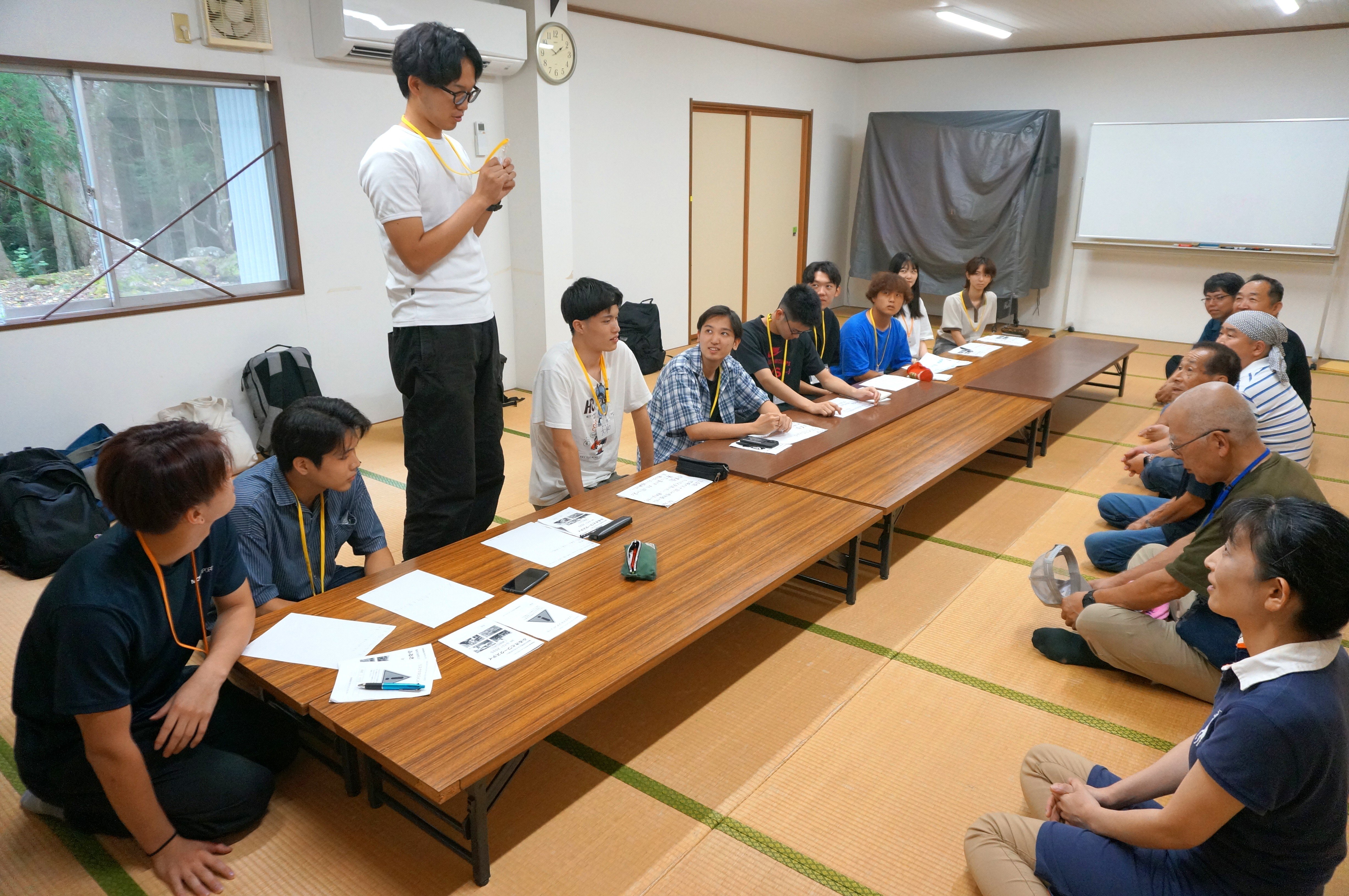 毎晩、その日に活動した内容をふりかえって、各自ががんばったことや印象に残ったこと、発見したことなどを共有しました。また、最終日には、地域の方々にも参加していただき、全体のまとめのふりかえりも行いました。