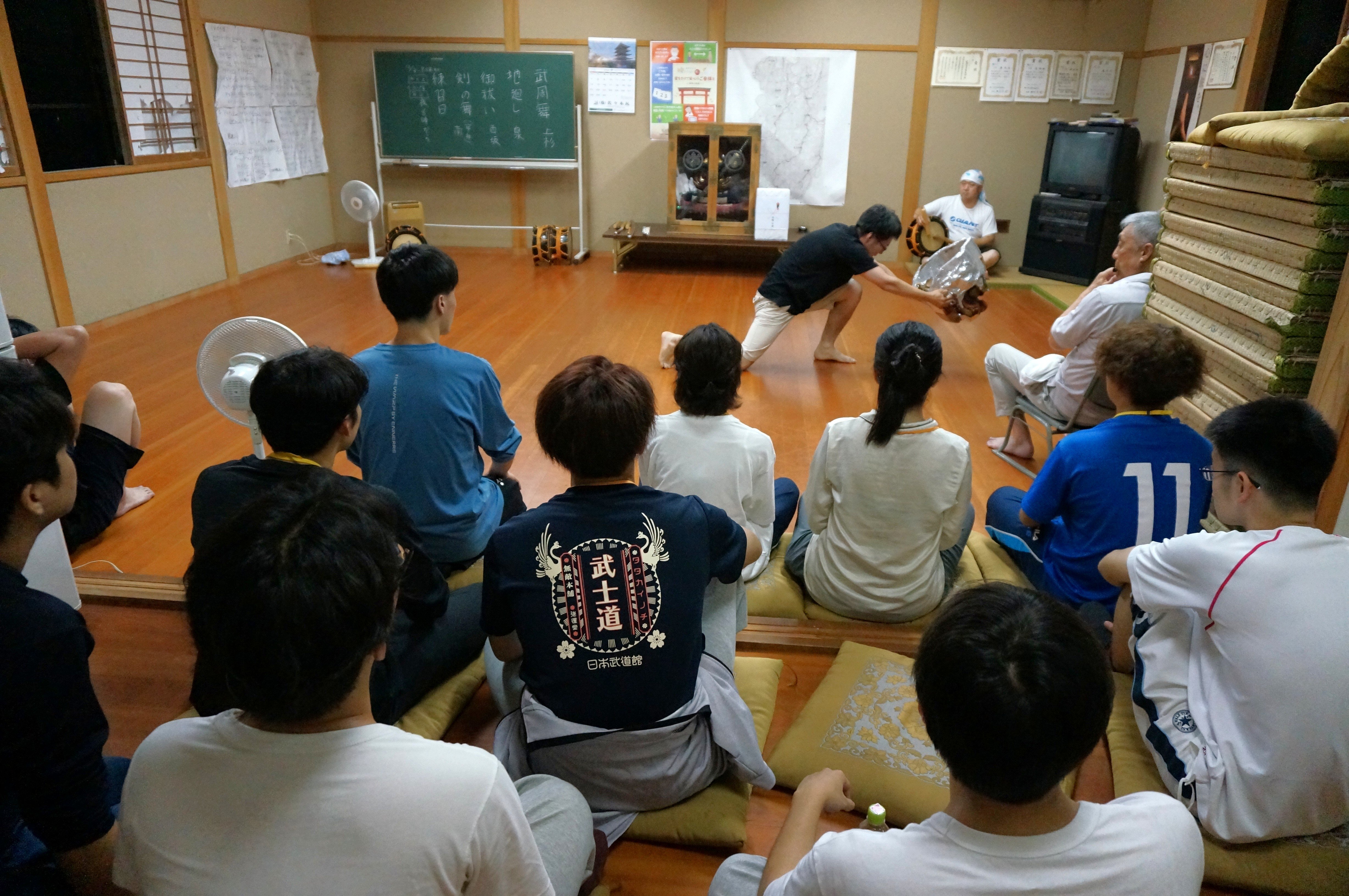夜には、10月に行われる地域の秋祭りに向けて、神楽の練習をされているところに見学に行きました。