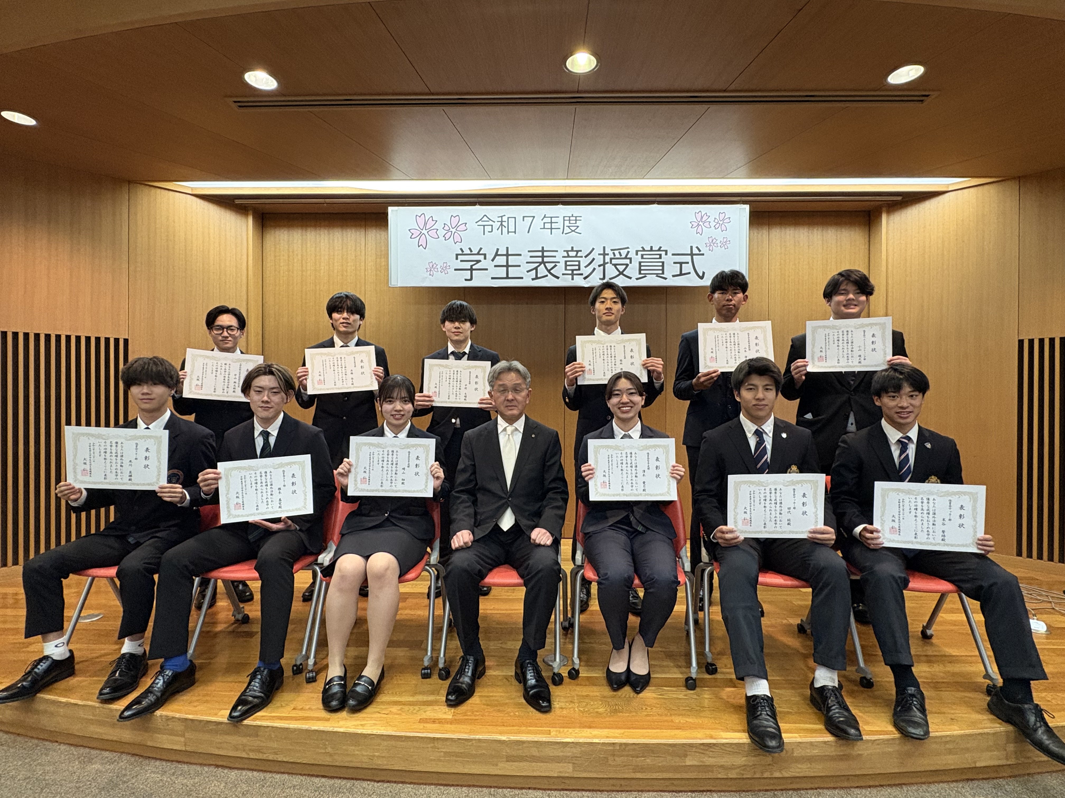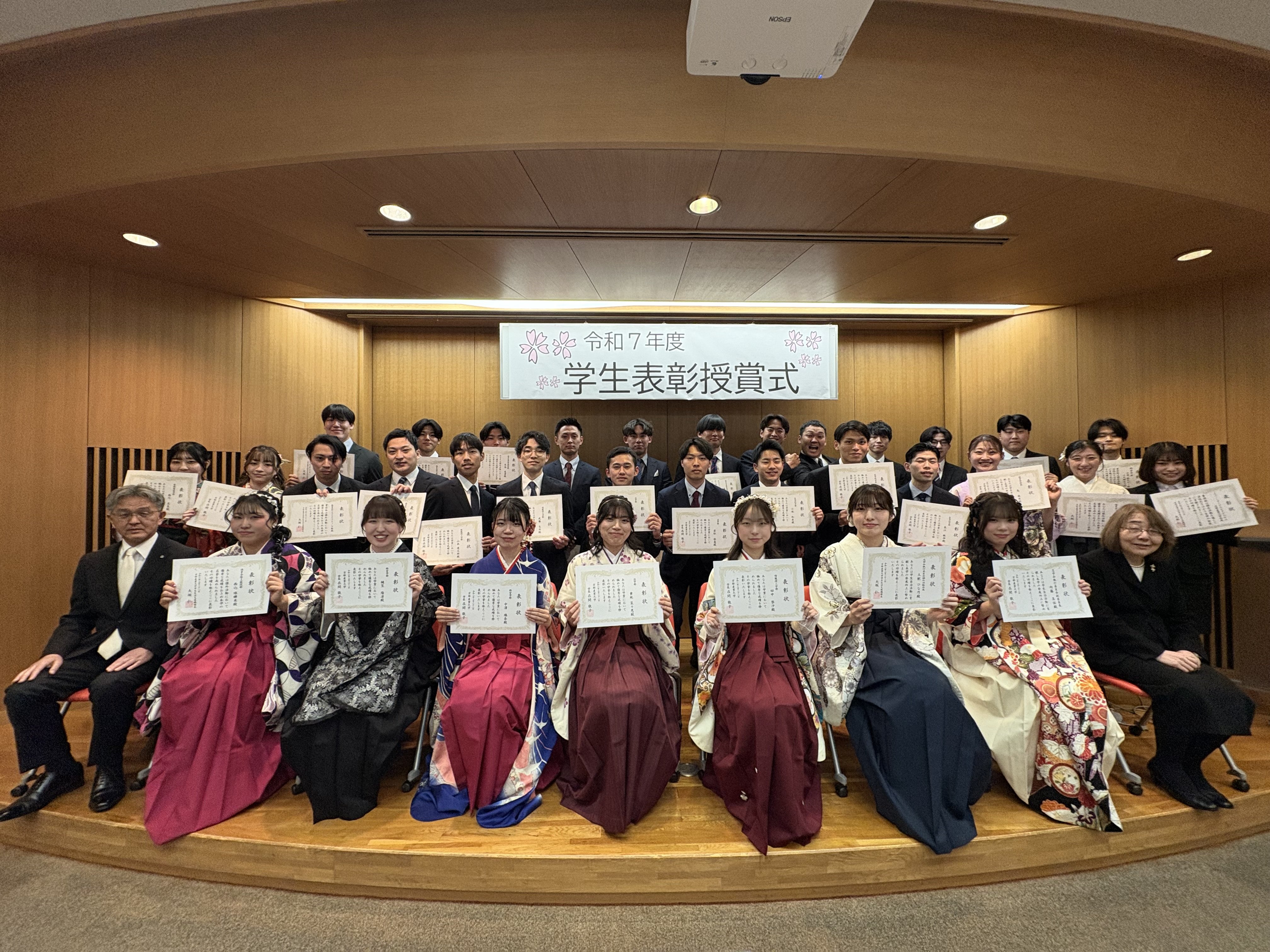 3月21日(土)、22日(日)「2025年度(令和7)年度学生表彰授賞式」が第1部から第3部に分かれて執り行われました。学生表彰は、学業成績、課外活動、社会貢献、大学貢献や学生自治活動等において、特に功績顕著と認められた個人と団体に対して、学長または学生生活支援機構長が表彰するものです。