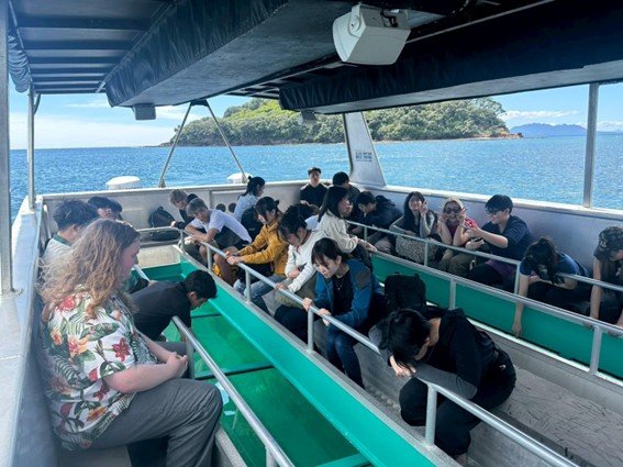 また、ゴート・アイランドではガラスボートに乗り、海中の様子を観察しました。透き通った海の中に広がる魚や海藻の姿から、自然が丁寧に守られていることを感じました。かつては食料確保のために動物が持ち込まれていたこの島も、現在では自然保護のため立ち入りが制限されています。人の手によって変えられた自然を、再び守ろうとする姿勢に強く心を動かされました。