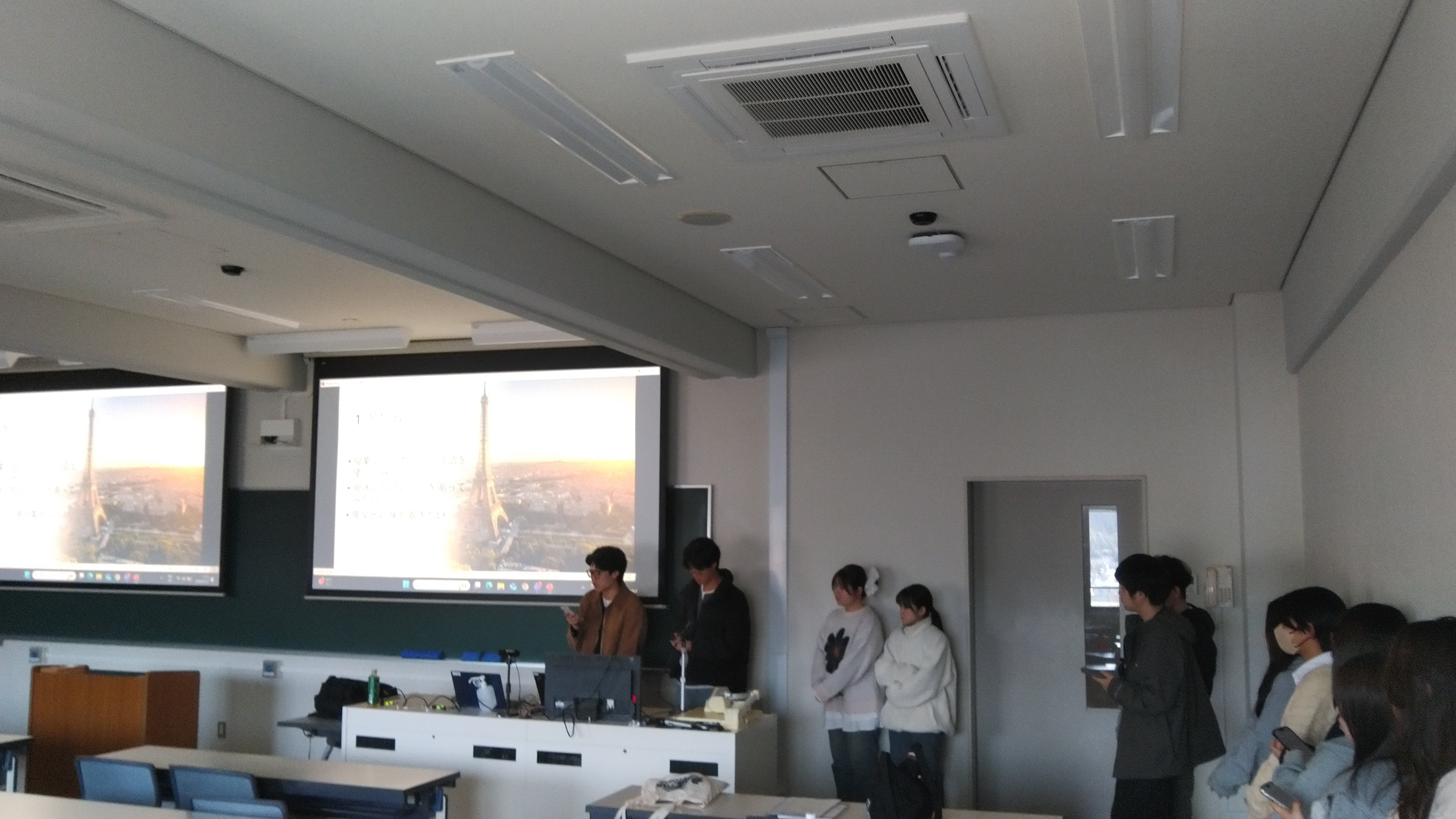 2026年3月27日12201教室にて、フランス語海外実習 成果発表会を、スペイン語専攻と合同で実施しました。