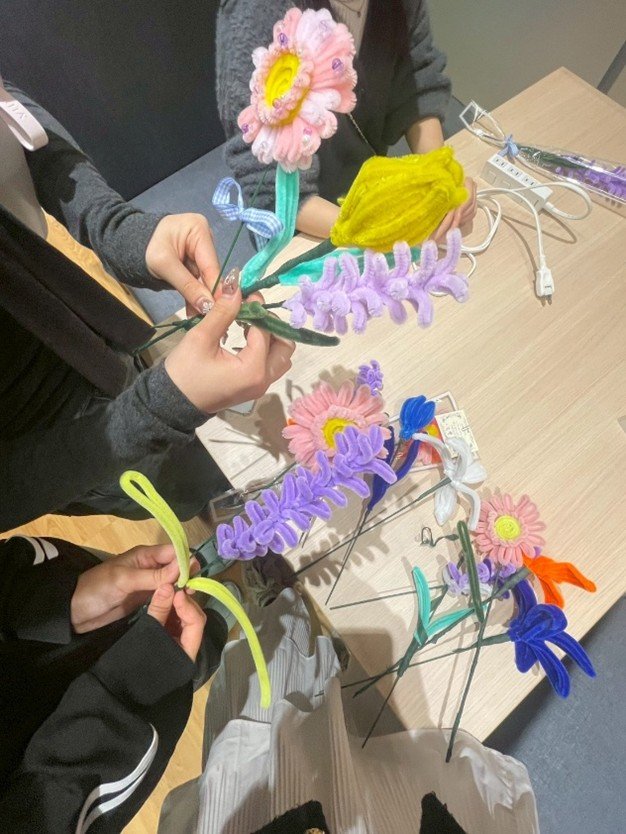 ワークショップではミサンガ、キーホルダー、モールフラワー、ビーズアクセサリーの4つを作る体験を行いました。