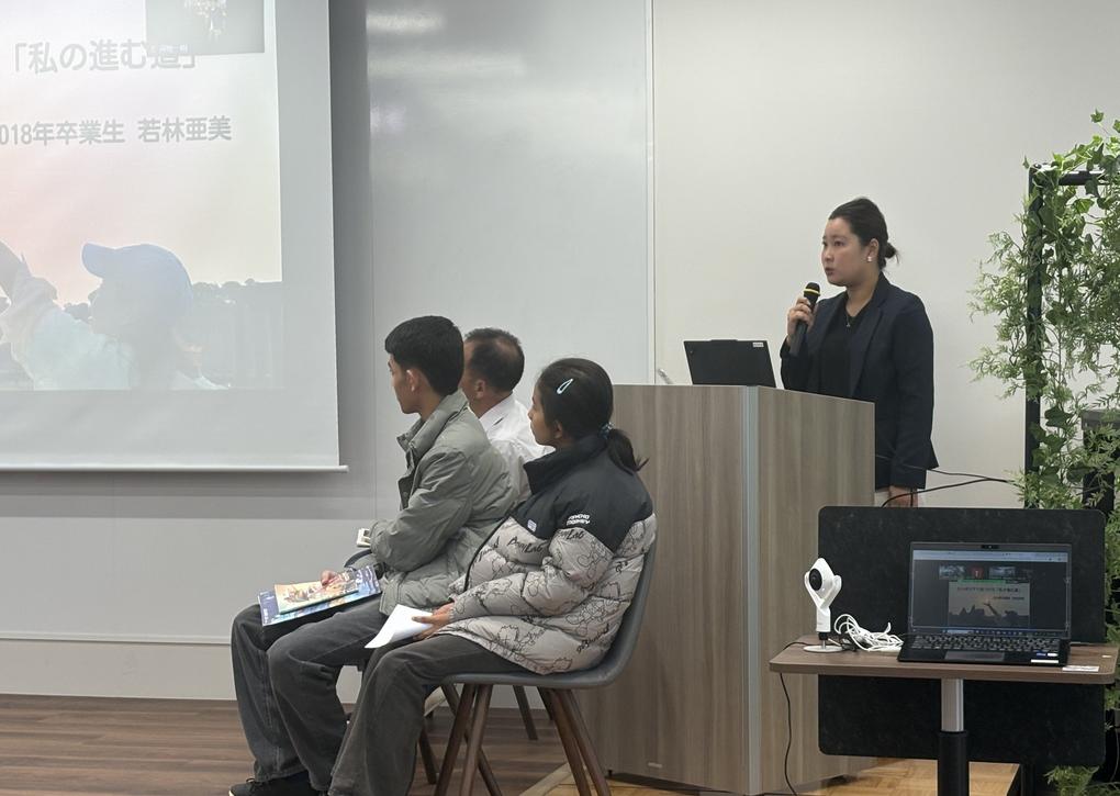 参加者の視点を「教育」の側から深めたのが、若林亜美さん(文化学部2018年卒)でした。若林さんは「カンボジアで見つけた“自分の進む道”」として、日本語教育へ至るストーリーを紹介しました。