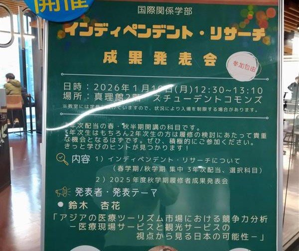 国際関係学部の科目「インディペンデント・リサーチ」において成果発表会を開催しました!