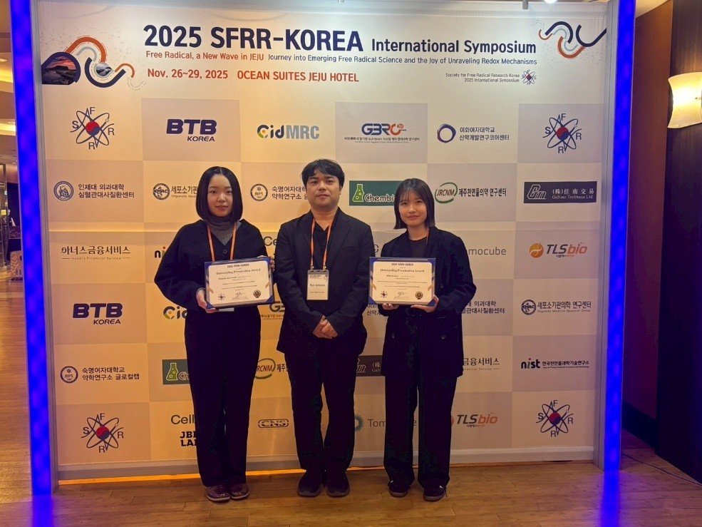 生命科学研究科 潮田研究室の駒井 実紅さん(博士前期課程2年)、河内 初穂さん(博士前期課程1年)がBest Poster Awardを受賞しました。