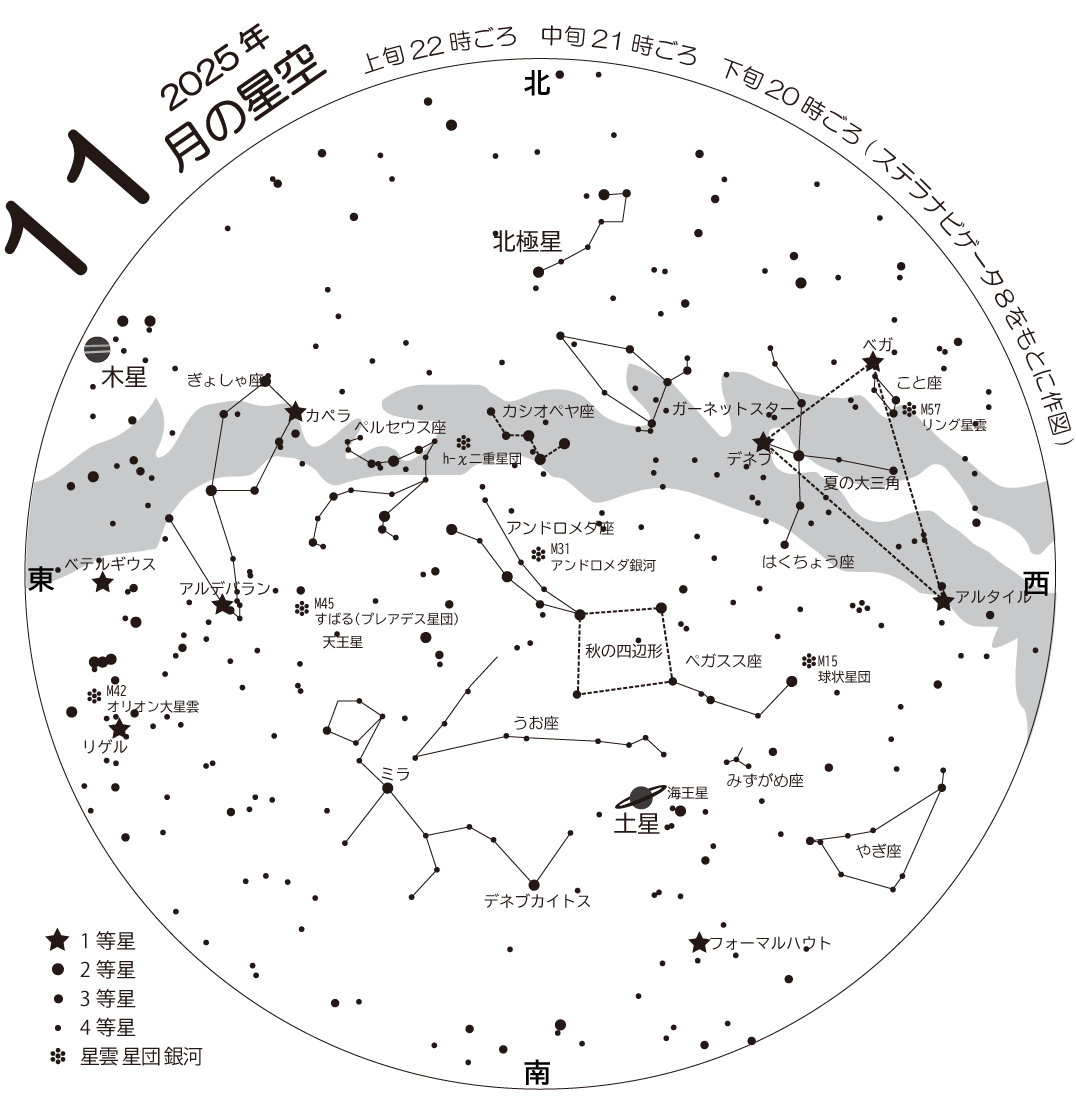 ペガスス座のM15、みずがめ座のM2などの球状星団が見られる季節です。