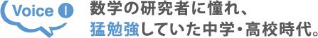 私が数学に関心を持ったのは、中学時代に数学者の矢野健太郎氏 1の本を読んだのがきっかけです。古代ギリシャ時代にまでさかのぼり、数々の高名な数学者のエピソードをまとめた内容だったと記憶していますが、この本で数学にがむしゃらに取り組む研究者の姿勢に憧れまして(笑)、数学の勉強を頑張るようになりました。受験勉強のための学習でもあったのですが、まったく苦痛を感じることはなかったですね。問題を解くのが好きで楽しくて、先生から与えられる問題に必死になって取り組んでいました。気が付けば深夜、ということもよくありました。