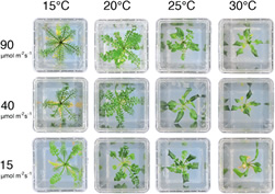 右の写真のように、温度や水の量、光の強さや波長に合わせて、多様に葉の形を変える能力を持つ。