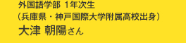 外国語学部 1年次生(兵庫県・神戸国際大学附属高校出身) 大津 朝陽さん
