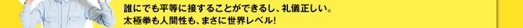 誰にでも平等に接することができるし、礼儀正しい。太極拳も人間性も、まさに世界レベル!