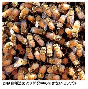 これを利用して、病気に強い遺伝子を持つ個体、あるいは寄生ダニに抵抗性を持つ個体を選別・抽出し、それらをかけ合わせることで病気やダニに強い品種をつくるのです。バイオテクノロジーの技法が確立されてきたために、不可能と言われてきたミツバチの品種改良に成功する可能性が出てきました。また、この手法によって、これも大きな課題の1つである、性質が温和で刺さない品種を作ることにも取り組んでいます。