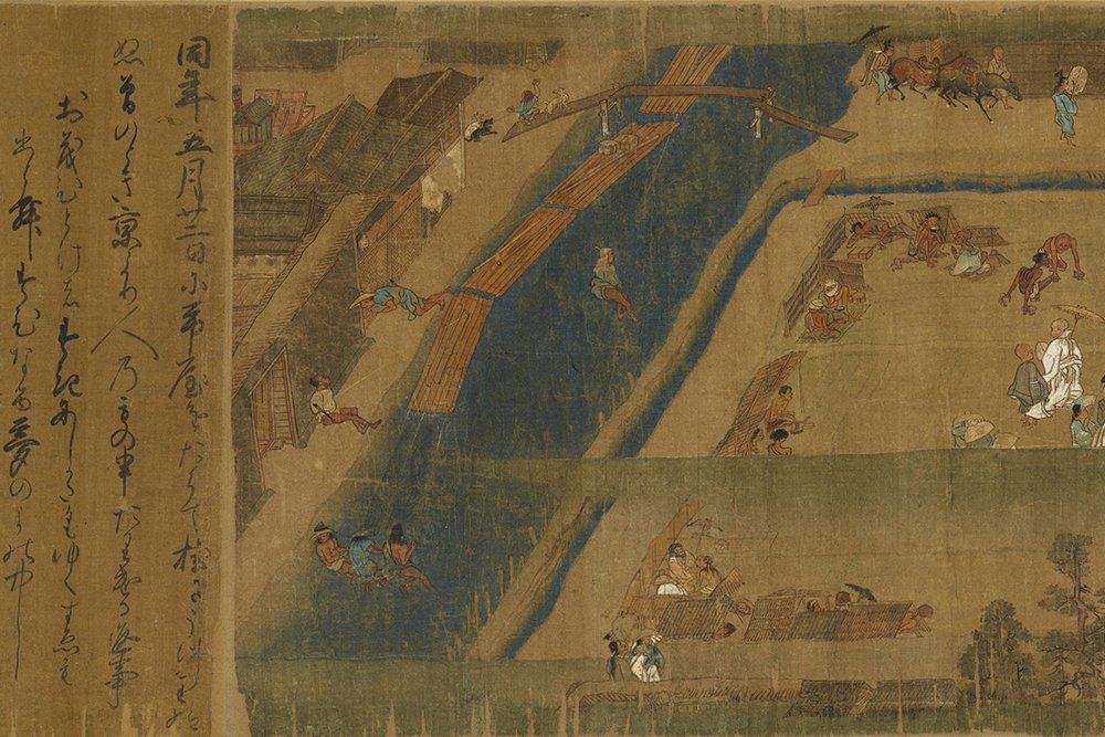 堀川は平安時代に運河としてできたもので、筏が引き上げられる様子が1300年頃の絵巻に描かれています。