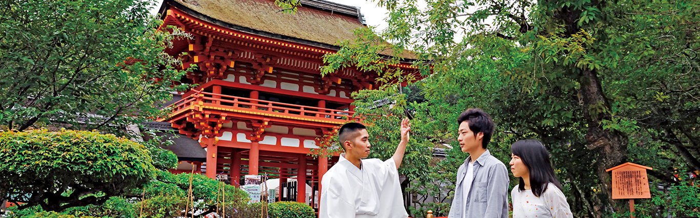 世界文化遺産に指定されている「上賀茂神社」。学生たちが中心となり、その魅力を発信している。授業やボランティア活動を通して、より多くの人々に世界遺産やその伝統行事を楽しんでもらうイベントを企画。近年注目を集める世界遺産をいち早く学習に取り入れ、伝統を理解しながら柔軟な視点で新しい価値を生み出す。今後もさまざまな形で協働し、京都の魅力を広めていく。