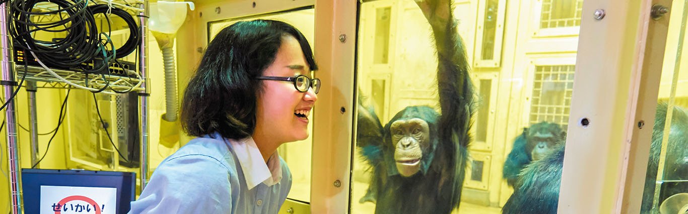 「動物について、もっと知りたい。学びたい。」その一心で、チンパンジーのお世話と飼育員の補佐に挑戦した浅野さん。「グローバル社会で活躍する理系産業人」の育成を目指す特長的なプログラムであるグローバル・サイエンス・コース(GSC)で出会った教員の紹介で、京都市動物園にて動物研究の補佐や園内イベントの掲示物制作などに挑戦した。京都産業大学は学生の学びへの意欲を大切にし、豊かな学びの場を提供している。学生と動物園をむすびつけ、現場での経験を通して新たな発見と成長をうみだしていく。