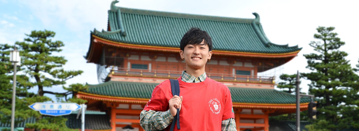 毎年来場者が10万人を超える京都における一大イベント「京都学生祭典」。その企画・運営を行う第17回京都学生祭典実行委員の実行委員長を務めることとなった山田さん。京都のまちを活性化することを目指し、2019年10月に平安神宮前での開催(予定)に向けて地域や企業の方と連携しながら企画を進めている。