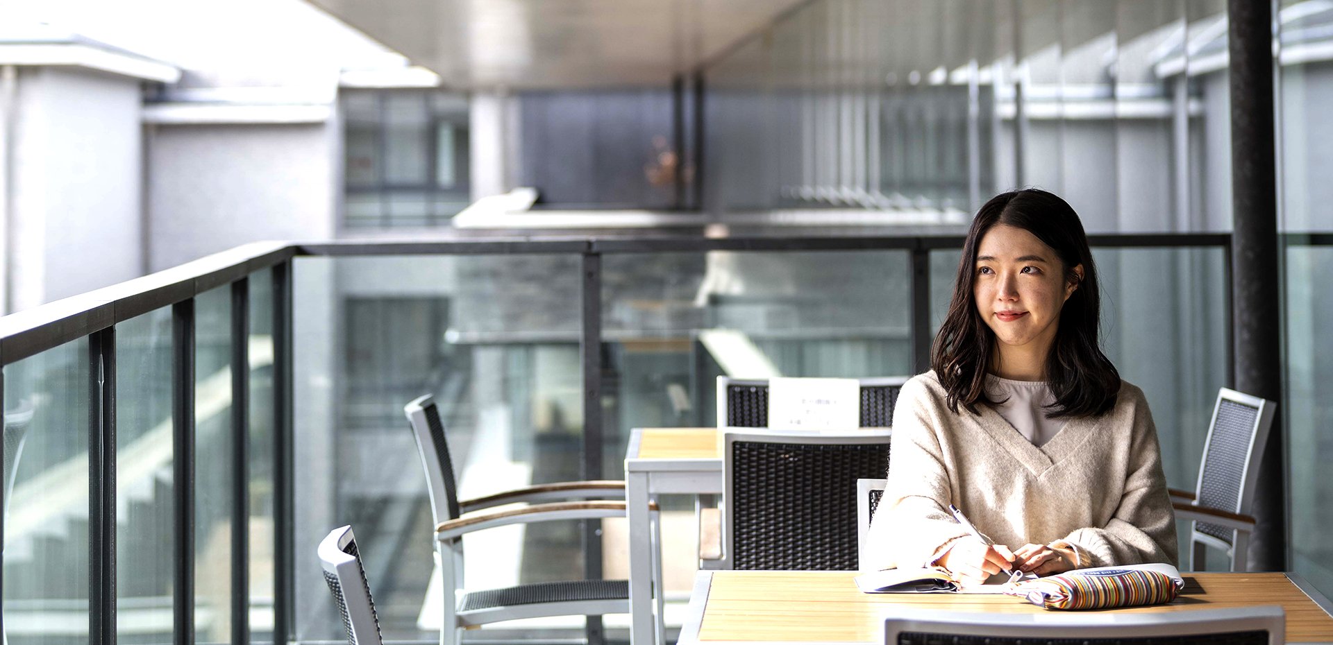 「私がこの学部で学んだことは『話す・聞く・書く・読む』に加えて『動く』こと。ここでは自身のやりたいこと、自身の好奇心を刺激し続けられる人ほど成長の上昇気流に乗れる気がします」。