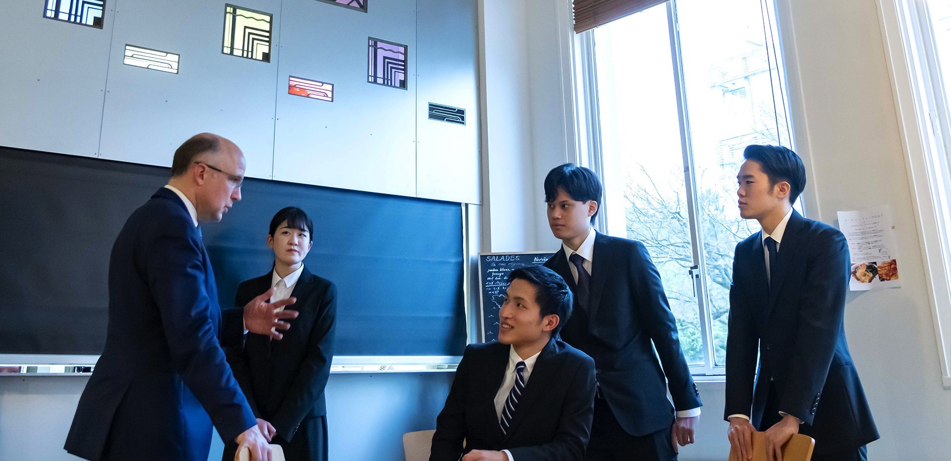 質疑の中で1人の学生が「長野県出身です」と言えば総領事はすぐに「あ、雪がすごいですね、私も今年は長野でスキーができたらいいなと思ってます」と返したり。「私は京都のあの店のパンやコーヒーが好きなんです」と、言葉の端々から日本人以上に日本を知っていることが伝わってきた。「だからこそ?国のフランスとの商習慣の違いなどの説明や?本企業がフランスに進出する際のアドバイスも明快なのだと思います」。
