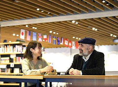 また、江國はスペイン語だけでなく「特別英語」にも参加することで、学びの幅を広げている。アメリカのミュージックビデオから見て取れる文化や表現方法を、ネイティブスピーカーの教員と共に分析して英語でディスカッションを行う。多種多様なプログラムから自分の目標に合わせた環境で、異文化交流と学びを実現できることが外国語学部の魅力である。