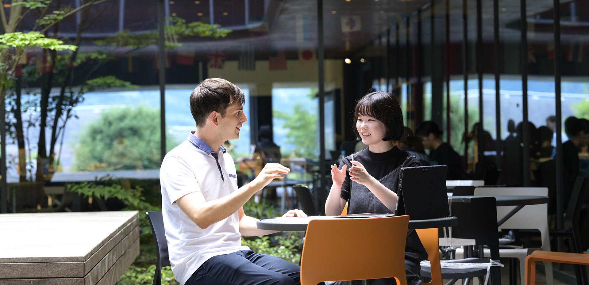 外国語学部では海外実習や留学のプログラムが充実しているほか、学内にいながら異文化に触れるチャンスがいくつも用意されている。ネイティブスピーカーの教員が多く在籍していることもその1つだ。