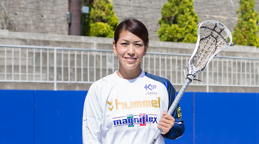 彼女こそ、まさに“伝道師”と呼ぶにふさわしい。京都産業大学の卒業生(2005年経営学部卒)である 山田幸代さんをひとくくりに紹介するのは難しい。まずもって、日本人初のプロラクロスプレーヤーであること。そして、大学創立50周年広報大使「むすびわざアンバサダー」であること。そして、今年の4月からは、大学院マネジメント研究科で学ぶ現役大学院生でもある。2足のわらじどころか、3足・4足と一人何役もこなす。そんな彼女は、トップアスリートとして1年の半分以上を海外でプレーする傍ら、本学と地域・社会との懸け橋として精力的に活動している。モットーは、「形がないもの」を創り上げることにチャレンジし、自ら道を切り開くチャンスをつかむために「一歩前に踏み出す」こと。その姿勢は、在学中も、そして今も変わらない。大きな夢は、「ラクロスを、子どもたちの夢の1つに挙げられるスポーツにすること」。彼女のチャレンジ精神は留まることを知らない。