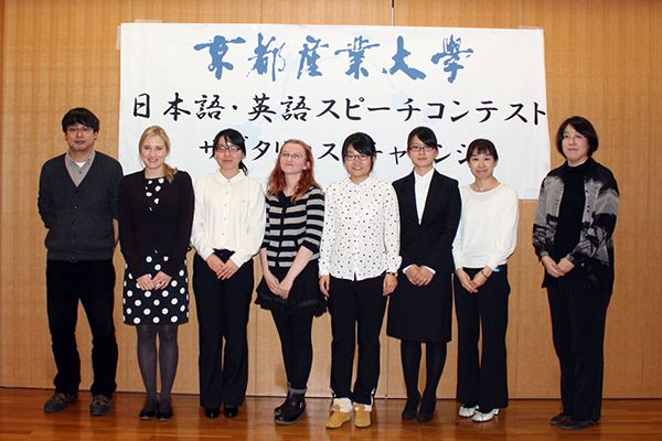 2015年度 日本語スピーチコンテスト サギタリウス賞(優勝)(賞状・副賞3万円) リ キンキンさん(中国 ハルビン師範大学)『人間は完璧じゃなくてもいい』 優秀賞(賞状・副賞1万円) カニエツカ アリツィアさん(ポーランド 国立アダムミツケヴィチ大学)『ヨーロッパの難民問題』 ジョ ショウビさん(中国 ハルビン師範大学)『いただきます』 入賞(賞状) クビーチコヴァー イヴァナさん (チェコ パラツキー大学)『日本語の問題』 トウ サさん(経営学部 4年次)『京都の魅力』
