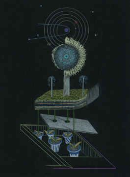 「有持有百のドローイングとシュルレアリスム」の中心的な展示物は、有持有百のドローイング作品20点程度と、彼のアニメーション作品1点です。京都産業大学外国語学部 長谷川ゼミの学生が、有持の有機的なドローイングの魅力をシュルレアリスムの観点からご紹介します。