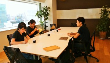 2017年8月24日のインタビュー当日、私達は渋谷駅のハチ公像前で待ち合せました。場所は、渋谷駅と表参道駅の中間くらいのところにあります。後で気づいたのですが、渋谷駅からは上り坂ですが、表参道駅からだと下り坂になります。表参道の方に行くと、オシャレなお店がたくさんあります。キラメックス株式会社はMFPR渋谷ビルの9Fにあり、「カッコよく働いておられる!」という感じがしました。受付の電話がオシャレだったり、ロビーにジャズが流れていたりするところも、私達にはIT企業らしい雰囲気だと感じました。