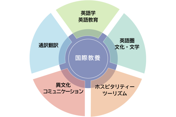 英語力を活かしてグローバル企業への就職や、ビジネス展開を考えているのなら、経済学部、経営学部、国際関係学部、外国語学部メディア・コミュニケーション専攻などの授業を多く履修することができるのもワンキャンパスの魅力。さらに、共通教育科目で人文、社会、自然科学の多様な科目も受講可能。自分だけの4年間の学びを作ることができます。