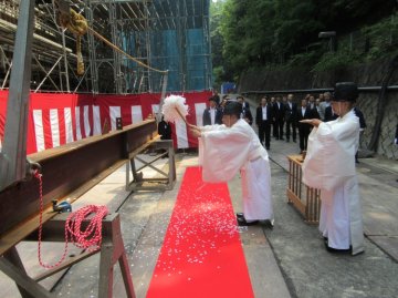 真理館上棟式を執り行いました 2019.08.02 8月1日(木)真理館の工事現場内にて、上棟式を執り行いました。 式典には、学校法人京都産業大学(建築主)、株式会社日建設計(設計者)、株式会社安井建築設計事務所(監理者)、清水建設株式会社(施工者)が参列し、関係者一同で真理館の安全を祈願し、上賀茂神社神職よりご祈祷いただきました。 2020年2月末には、既に使用が始まっている1期工事側とつながり、全体が完成する予定です。 #ニュース #お知らせ #在学生 Tweet
