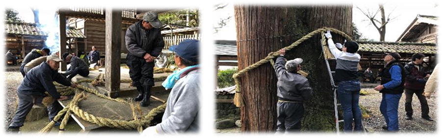 中野ゼミでは、グループ研究として、「サプライチェーンの視点からの商品開発」に取り組んでいます。魅力的な素材を探し(素材開発)、生産に関わる人・組織と流通・加工に関わる人・組織をつないで、製品のコンセプトを考えたり、調査、試作を行い(製品開発)、販売方法やプロモーションを考える(売り方開発)という一連のプロセスにトライしています。松本は、同じグループの島津雅弘、(写真右側)、寺坂郁哉(写真左側)とアイディアを議論する過程で、静原地域の状況や静原応援隊の活動の話を共有しました。静原地域は、過疎化・高齢化が進み、農業の衰退や地域の伝統行事への若者の参加率の低下といった問題を抱えています。2019年春頃、静原応援隊は、「地域で作った藁でしめ縄をつくるという伝統が途絶えるのはもったいない」という思いで、もち米づくりを担うことになっていました。松本・島津・寺坂は、しめ縄もち米づくりの存続、静原の文化をより多くの人に知ってもらうこと、そして何より、このような地域活動を行っている学生を応援するために、メッセージ性のある商品を開発したい!と考えました。