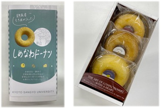 開発した商品は、普通のドーナツのように見えますが、生地にもち米が使われているため、「腹持ちがいい」「和にこだわる」という特徴があります。学内の試食会を兼ねたアンケート調査をもとに、「チーズ」「ゆず」「きなこ」の3種類の味を揃えました。ゆずには静原産柚子ピール、きなこには静原産大豆を配合しています。パッケージ・デザインについては、ゼミ生が考案した商品であること、アンケート調査でも学生の声を大事にしたこともあり、学生が手にとりやすいポップな感じを取り入れました。