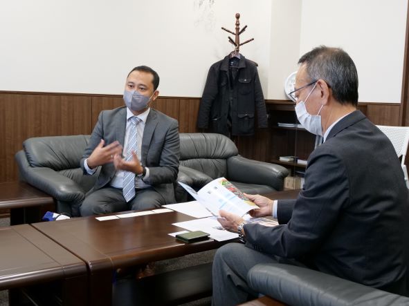FabLab JOGIAはインドネシアの古都ジョグジャカルタに位置するガジャマダ大学が中心となり、2022年5月より設立されたファブラボです。黒坂 光 学長への表敬訪問の際には、FabLab JOGIAでレーザー彫刻されたガジャマダ大学のスタンド(写真中央)を寄贈品としていただきました。