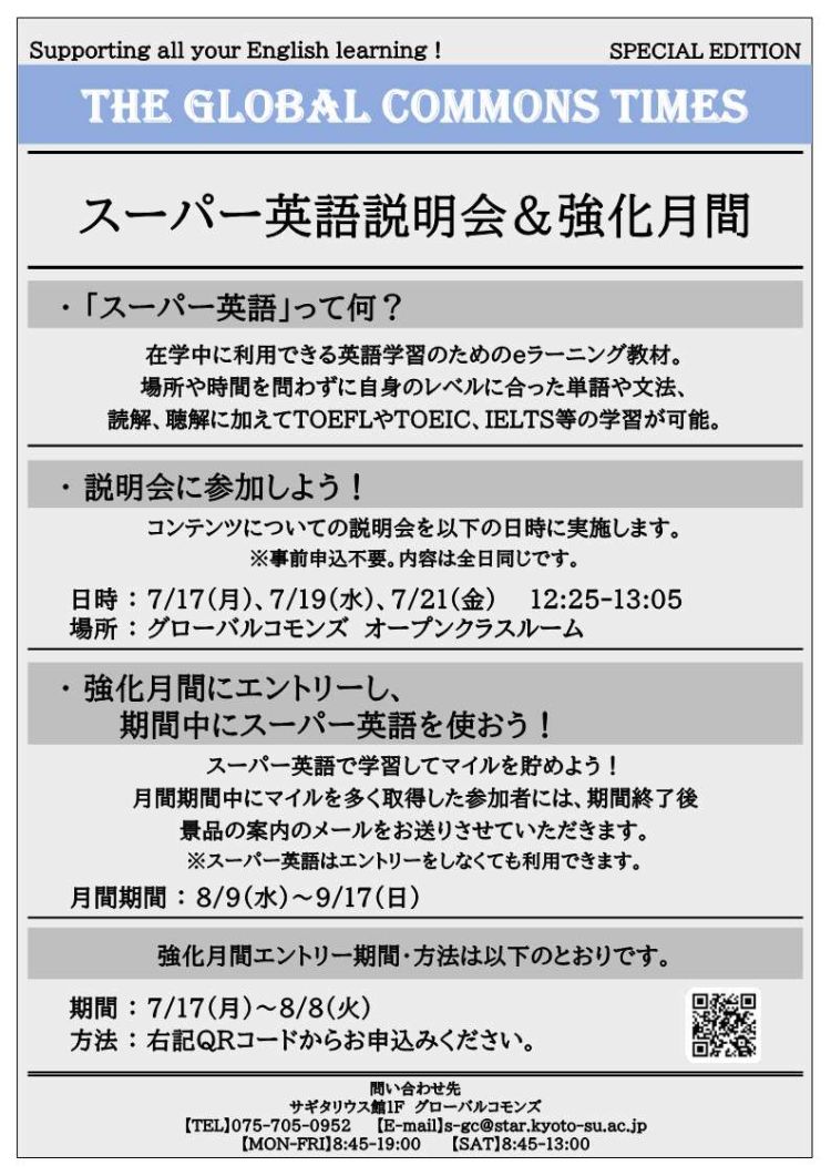 なお、グローバルコモンズでは、スーパー英語のコンテンツの紹介も行っています。