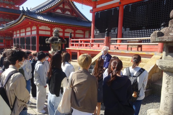 文化学部専門教育科目「京都文化フィールド演習N」(担当:中野 宏幸教授)は、1年次生を対象に、京都の歴史や伝統文化はもとより、地域の産業や生活、人の流れやインフラの機能、地域を支える仕組みなど、自分で実際に見て、聞いて感じとり、「京都」への理解を深める授業です。春学期の演習では、清水・東山・岡崎地区を中心に、京都の寺社や工芸ゆかりの地への訪問、街の探索や街歩きのガイド活動への参加、行政・企業とのワークショップを通じて地域に接し、これからの観光・交流や地域づくりの取り組みを考えました。