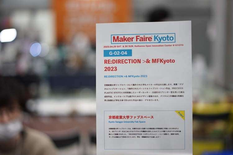 2023年4月29日(土)・30日(日)、けいはんなオープンイノベーションセンター(KICK)で開催されたものづくり展示イベント「Maker Faire Kyoto 2023」に本学ファブスペースと、平井研&蚊野研の2グループが出展しました。Maker Faireは、世界各地で開催されているメイカー(ものづくりを行う人)の祭典で、2019年より京都でもMaker Faire Kyotoという名称で開催されるようになりました。2020年〜2022年はオンライン開催やメイカーのみの交流会など開催規模の縮小を余儀なくされていましたが、今年は4年ぶりに対面開催されました。