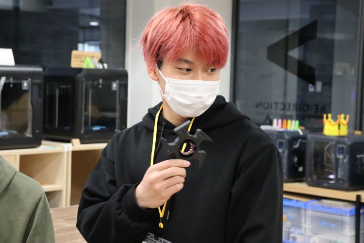 2023年3月15日(水)、京都府立京都すばる高等学校の生徒を対象にしたデジタルものづくり体験ワークショップを14号館にあるファブスペースで開催しました。ファブスペースは、3Dプリンタやレーザーカッターといったデジタル工作機器を活用したものづくりや電子工作を日常的に行える学内施設です。所定の講習会を受講した本学学生であれば1年次より使用することができます。