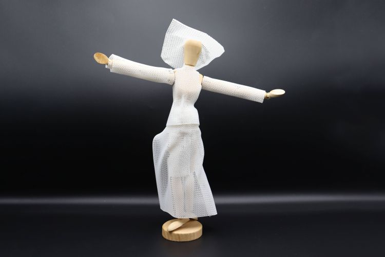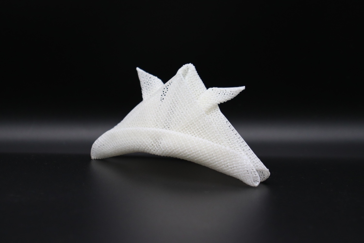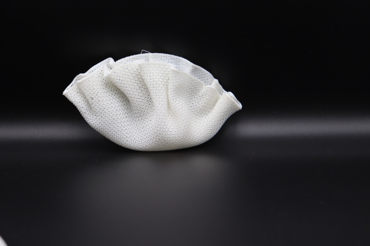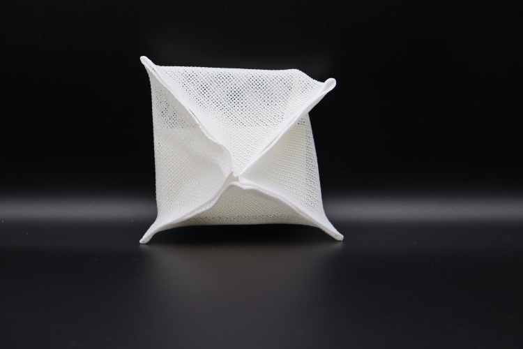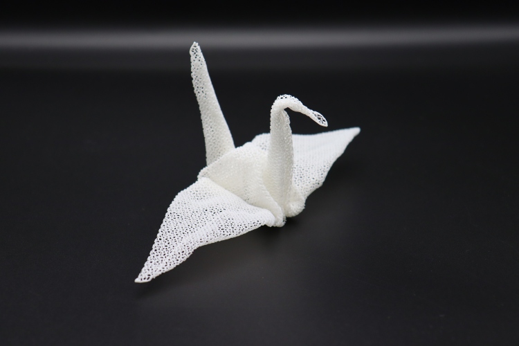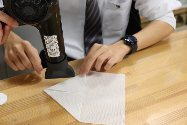 最後に45℃の熱を加えることで柔らかくなる3Dプリンタ素材「TRF+H」で作ったシートをドライヤーで温め、折り紙や布のように加工することで、さまざまな造形にチャレンジしました!このワークショップは、先端情報学研究科生の研究テーマ「感温性フィラメントの変形特性を活用する3Dプリントの創造的な用途の検討」から発展したものです。今後も本学学生と高校生が交流することができるイベントを開催することができればと思います。
